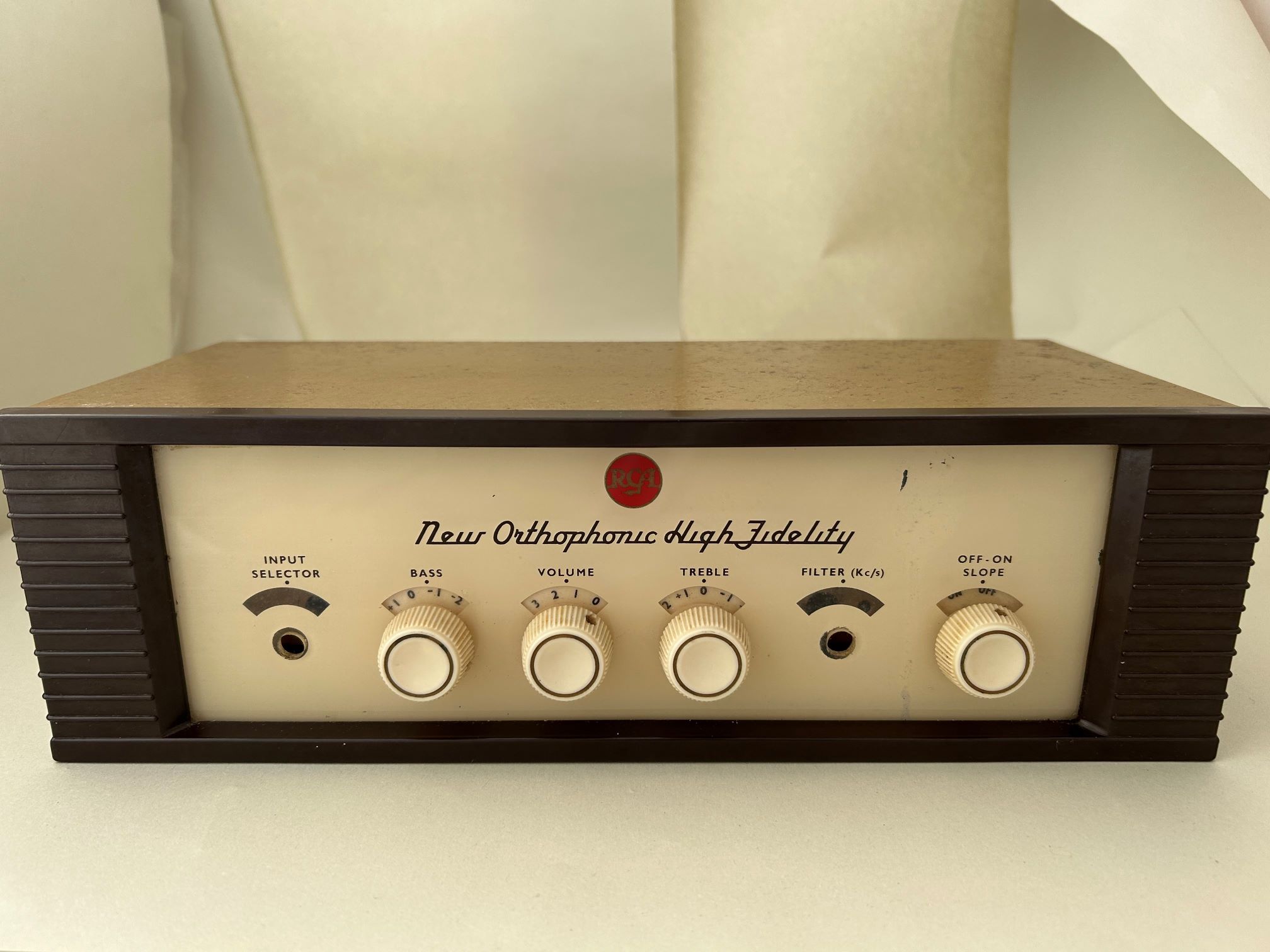 RCA LMI-32215A New Orthophonic High Fidelity Pre-ampA classic RCA pre-amp, containing two Mullard M8162 / CV 4024 (ECC81) valves, along with an EF86. It is missing two knobs and has seemingly been modified at some point in its life. It has has not been tested and is assumed to be in non-working condition. It is sold "as seen" for spares / repairs. Price: £75 (plus £10 postage) Contact: info@audiojumble.co.uk Click here for more photos |