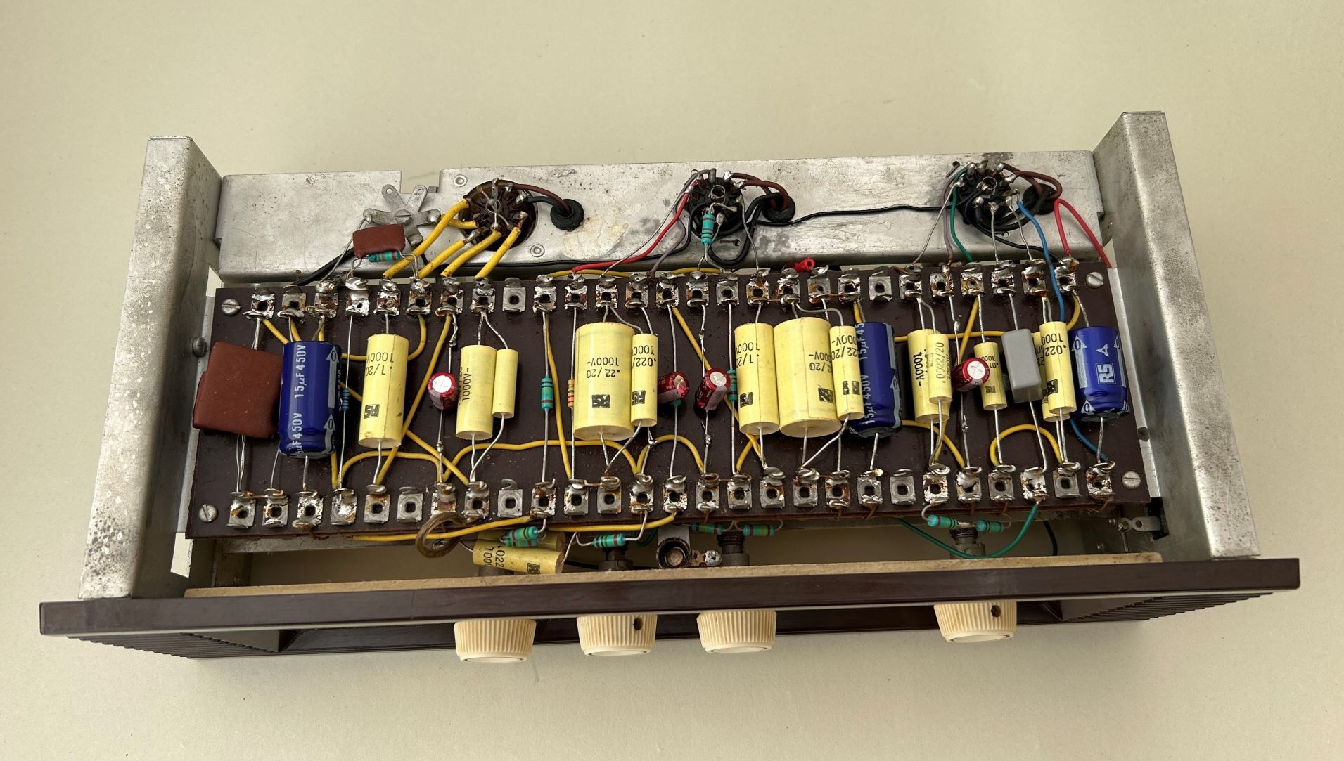 RCA LMI-32215A New Orthophonic High Fidelity Pre-ampA classic RCA pre-amp, containing two Mullard M8162 / CV 4024 (ECC81) valves, along with an EF86. It is missing two knobs and has seemingly been modified at some point in its life. It has has not been tested and is assumed to be in non-working condition. It is sold "as seen" for spares / repairs. Price: £75 (plus £10 postage) Contact: info@audiojumble.co.uk |